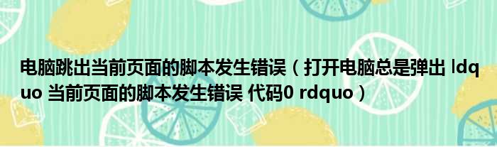 电脑跳出当前页面的脚本发生错误(打开电脑总是弹出 ldquo 当前页面的脚本发生错误 代码0 rdquo)