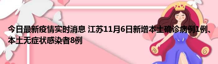 江苏卫健委通报,11月6日0-24时,江苏新增本土确诊病例1例(南京市报告,为集中隔离点发现,在定点医院隔离治疗)新增本土无症状感染者8