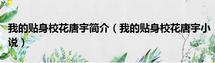 导读 大家好,今天小六子来为大家解答以下的问题,关于我的贴身校花唐宇简介,我的贴身校花唐宇小说这个很多人还不知道,现在让我们一起来看看吧
