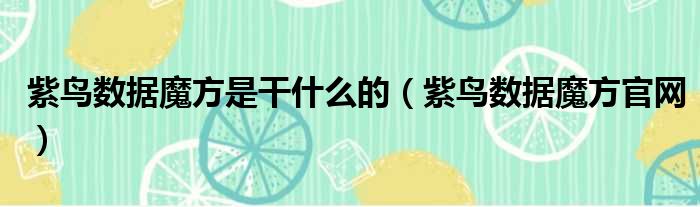 紫鸟数据魔方是干什么的(紫鸟数据魔方官网)