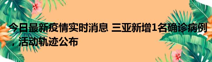 今日最新疫情实时消息 三亚新增1名确诊病例,活动轨迹公布