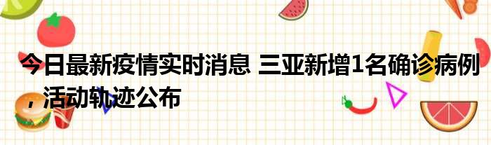 今日最新疫情实时消息 三亚新增1名确诊病例,活动轨迹公布