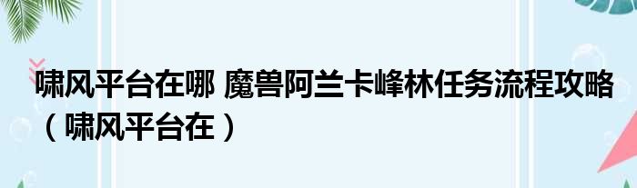 导读 大家好,今天小六子来为大家解答以下的问题,关于啸风平台在哪 魔兽阿兰卡峰林任务流程攻略,啸风平台在这个很多人还不知道,现在让我们一