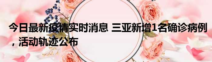 今日最新疫情实时消息 三亚新增1名确诊病例,活动轨迹公布