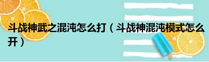 斗战神武之混沌怎么打(斗战神混沌模式怎么开)