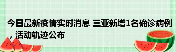 今日最新疫情实时消息 三亚新增1名确诊病例,活动轨迹公布