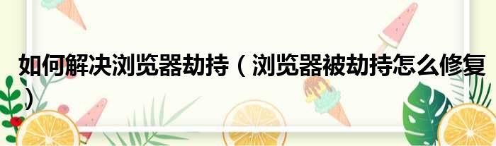 如何解决浏览器劫持(浏览器被劫持怎么修复)
