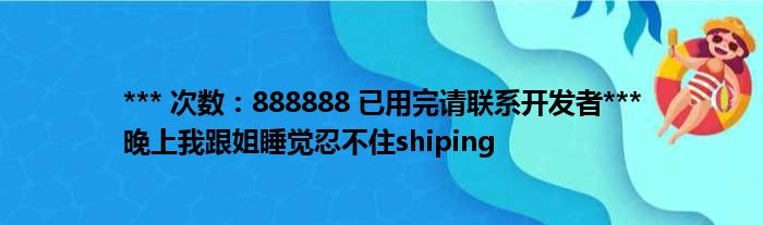 大家好,今天小六子来为大家解答以下的问题,关于*** 次数:888888 已用完请联系开发者*** 晚上我跟姐睡觉忍不住shiping这个很多人还不知道,现在让我们一起来看看吧!