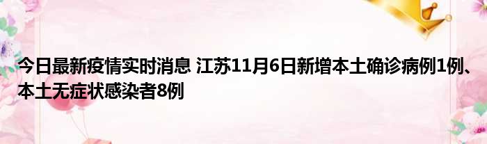 江苏卫健委通报,11月6日0-24时,江苏新增本土确诊病例1例(南京市报告,为集中隔离点发现,在定点医院隔离治疗)新增本土无症状感染者8