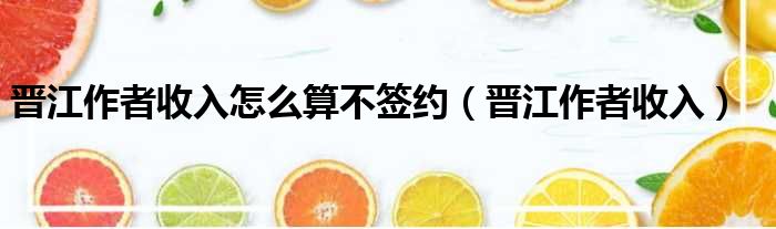 大家好,今天小六子来为大家解答以下的问题,关于晋江作者收入怎么算不签约,晋江作者收入这个很多人还不知道,现在让我们一起来看看吧!