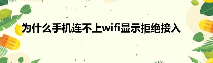 大家好,今天小六子来为大家解答以下的问题,关于为什么手机连不上wifi显示拒绝接入这个很多人还不知道,现在让我们一起来看看吧!