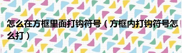 导读 大家好,今天小六子来为大家解答以下的问题,关于怎么在方框里面打钩符号,方框内打钩符号怎么打这个很多人还不知道,现在让我们一起来看看