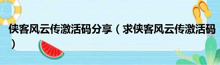 侠客风云传激活码分享(求侠客风云传激活码)