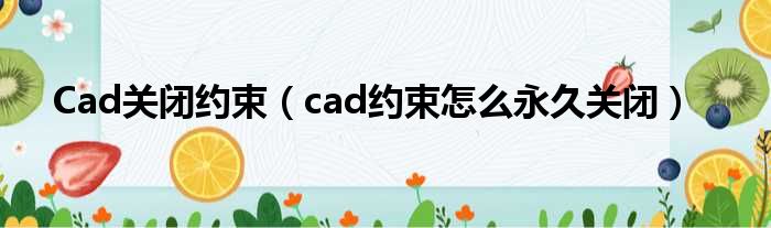 Cad关闭约束(cad约束怎么永久关闭)