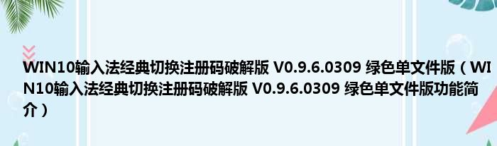 WIN10输入法经典切换注册码破解版 V0.9.6.0309 绿色单文件版(WIN10输入法经典切换注册码破解版 V0.9.6.0309 绿色单文件版功能简介)