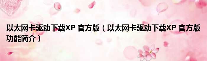 以太网卡驱动下载XP 官方版(以太网卡驱动下载XP 官方版功能简介)