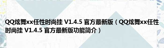 QQ炫舞xx任性时尚挂 V1.4.5 官方最新版(QQ炫舞xx任性时尚挂 V1.4.5 官方最新版功能简介)
