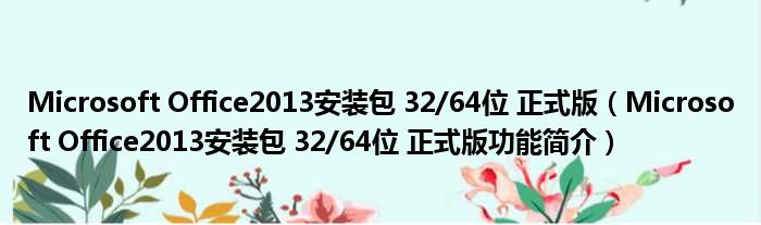 Microsoft Office2013安装包 32/64位 正式版(Microsoft Office2013安装包 32/64位 正式版功能简介)