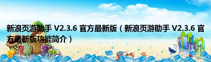 新浪页游助手 V2.3.6 官方最新版(新浪页游助手 V2.3.6 官方最新版功能简介)