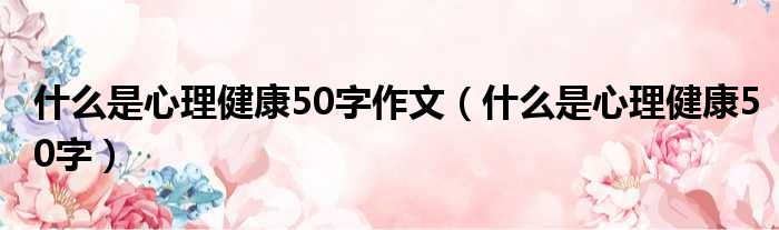 导读 大家好,今天小六子来为大家解答以下的问题,关于什么是心理健康50字作文,什么是心理健康50字这个很多人还不知道,现在让我们一起来看看吧