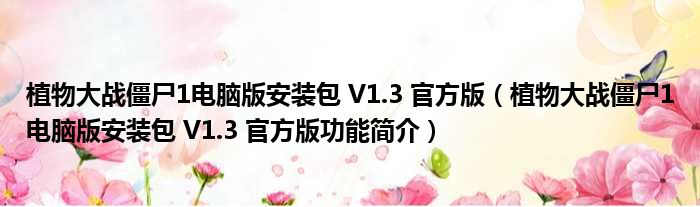 植物大战僵尸1电脑版安装包 V1.3 官方版(植物大战僵尸1电脑版安装包 V1.3 官方版功能简介)