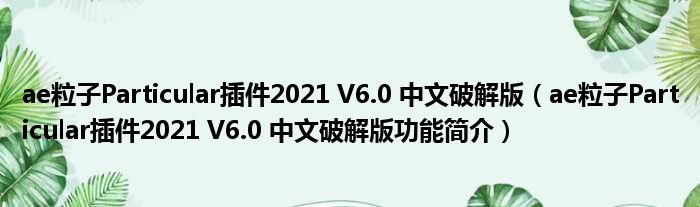 ae粒子Particular插件2021 V6.0 中文破解版(ae粒子Particular插件2021 V6.0 中文破解版功能简介)
