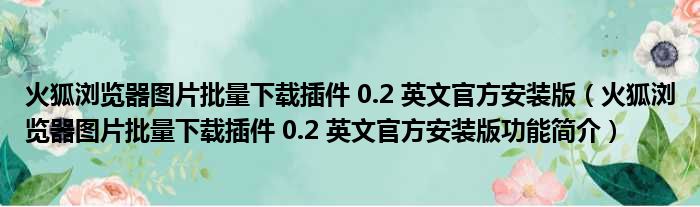 火狐浏览器图片批量下载插件 0.2 英文官方安装版(火狐浏览器图片批量下载插件 0.2 英文官方安装版功能简介)
