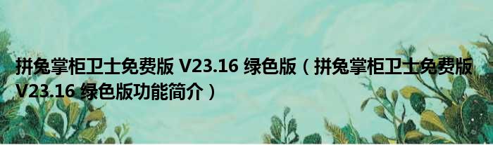 拼兔掌柜卫士免费版 V23.16 绿色版(拼兔掌柜卫士免费版 V23.16 绿色版功能简介)