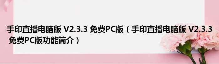 手印直播电脑版 V2.3.3 免费PC版(手印直播电脑版 V2.3.3 免费PC版功能简介)