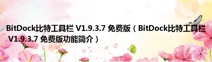 导读 大家好,关于BitDock比特工具栏 V1 9 3 7 免费版,BitDock比特工具栏 V1 9 3 7 免费版功能简介这个很多人还不知道,小勒来为大家解答以上
