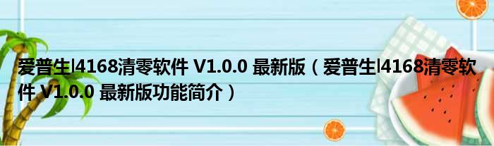 爱普生l4168清零软件 V1.0.0 最新版(爱普生l4168清零软件 V1.0.0 最新版功能简介)