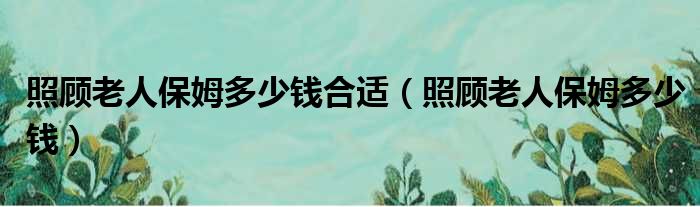 照顾老人保姆多少钱合适(照顾老人保姆多少钱)
