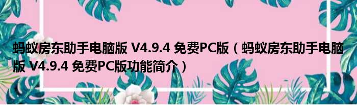 蚂蚁房东助手电脑版 V4.9.4 免费PC版(蚂蚁房东助手电脑版 V4.9.4 免费PC版功能简介)