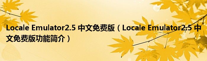Locale Emulator2.5 中文免费版(Locale Emulator2.5 中文免费版功能简介)