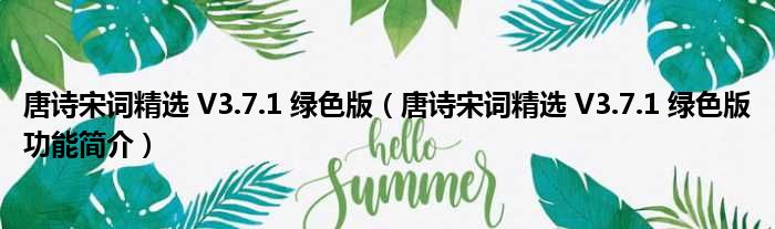 唐诗宋词精选 V3.7.1 绿色版(唐诗宋词精选 V3.7.1 绿色版功能简介)