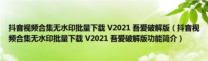 抖音视频合集无水印批量下载 V2021 吾爱破解版(抖音视频合集无水印批量下载 V2021 吾爱破解版功能简介)