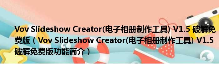 Vov Slideshow Creator(电子相册制作工具) V1.5 破解免费版(Vov Slideshow Creator(电子相册制作工具) V1.5 破解免费版功能简介)