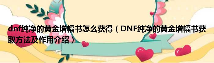 dnf纯净的黄金增幅书怎么获得(DNF纯净的黄金增幅书获取方法及作用介绍)
