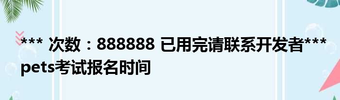 大家好,今天小六子来为大家解答以下的问题,关于*** 次数:888888 已用完请联系开发者*** pets考试报名时间这个很多人还不知道,现在让我们一起来看看吧!