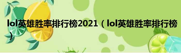 lol英雄胜率排行榜2021(lol英雄胜率排行榜)