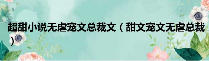 导读 大家好,今天小六子来为大家解答以下的问题,关于超甜小说无虐宠文总裁文,甜文宠文无虐总裁这个很多人还不知道,现在让我们一起来看看吧!1