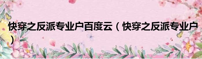 导读 大家好,今天小六子来为大家解答以下的问题,关于快穿之反派专业户百度云,快穿之反派专业户这个很多人还不知道,现在让我们一起来看看吧!1