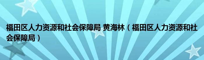福田区人力资源和社会保障局 黄海林(福田区人力资源和社会保障局)