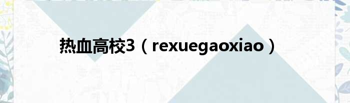 大家好,今天小六子来为大家解答以下的问题,关于热血高校3,rexuegaoxiao这个很多人还不知道,现在让我们一起来看看吧!