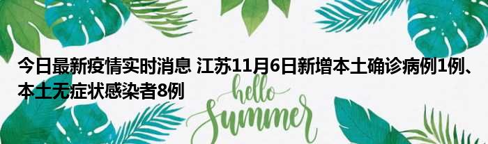江苏卫健委通报,11月6日0-24时,江苏新增本土确诊病例1例(南京市报告,为集中隔离点发现,在定点医院隔离治疗)新增本土无症状感染者8