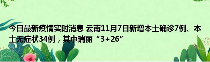今日最新疫情实时消息 云南11月7日新增本土确诊7例、本土无症状34例,其中瑞丽“3+26”
