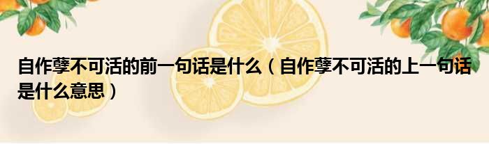自作孽不可活的前一句话是什么(自作孽不可活的上一句话是什么意思)