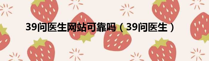 大家好,今天小六子来为大家解答以下的问题,关于39问医生网站可靠吗,39问医生这个很多人还不知道,现在让我们一起来看看吧!