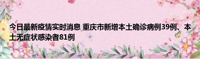 今日最新疫情实时消息 重庆市新增本土确诊病例39例、本土无症状感染者81例