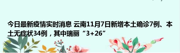 今日最新疫情实时消息 云南11月7日新增本土确诊7例、本土无症状34例,其中瑞丽“3+26”